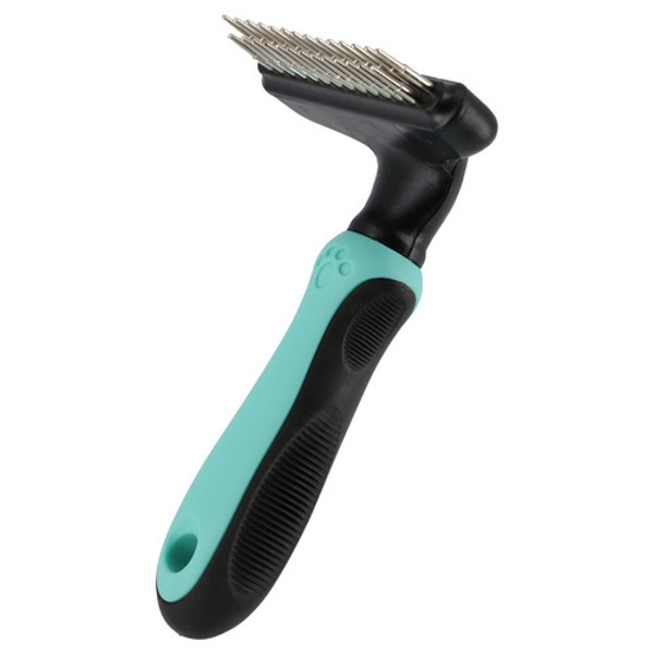 De Herderhark (21,5×5,2 cm) is speciaal ontworpen voor het verwijderen van losse ondervacht en het voorkomen van klitten bij honden met een dichte of lange vacht. De afgeronde tanden glijden soepel door de vacht zonder de huid te irriteren. Perfect voor seizoensverharing en regelmatige vachtverzorging.