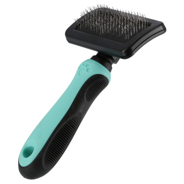 De Slickerborstel Medium (19,5×1,25 cm) is de perfecte middenmaat voor honden en katten met een gemiddelde tot halflange vacht. De fijne gebogen pinnen verwijderen efficiënt losse haren, vuil en lichte klitten, zonder de huid te beschadigen. Ergonomisch handvat garandeert comfortabel kammen, ideaal voor dagelijks onderhoud.