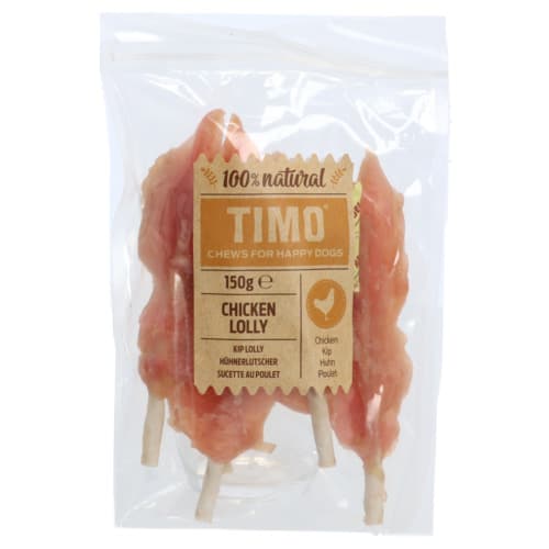 De Timo Lolly Kip 150 gr is een heerlijke en verantwoorde kauwsnack voor honden, gemaakt van 100% kip. Deze smakelijke lolly’s zijn perfect als beloning of tussendoortje en vallen in de smaak bij vrijwel elke hond.