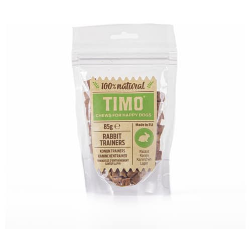 De Timo Trainers 85 gr Konijn zijn heerlijke en verantwoorde 100% natuurlijke beloningssnacks, speciaal ontwikkeld voor training en dagelijkse beloningsmomenten. Deze snacks zijn gemaakt van konijn en bevatten geen toevoegingen.